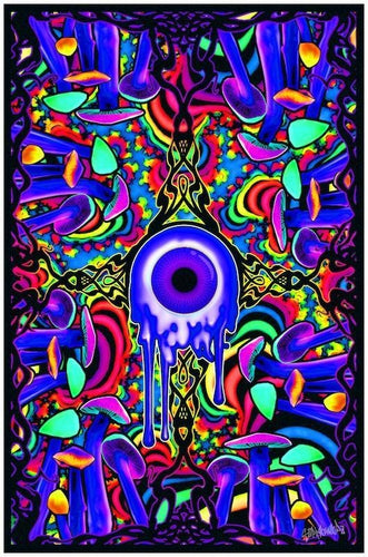 3D - Glow in the Dark - Magic Mushroom Spiral - Tapestry