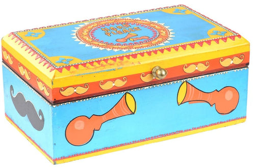 Mustache and Horn - Hand-painted - Wooden Storage Box