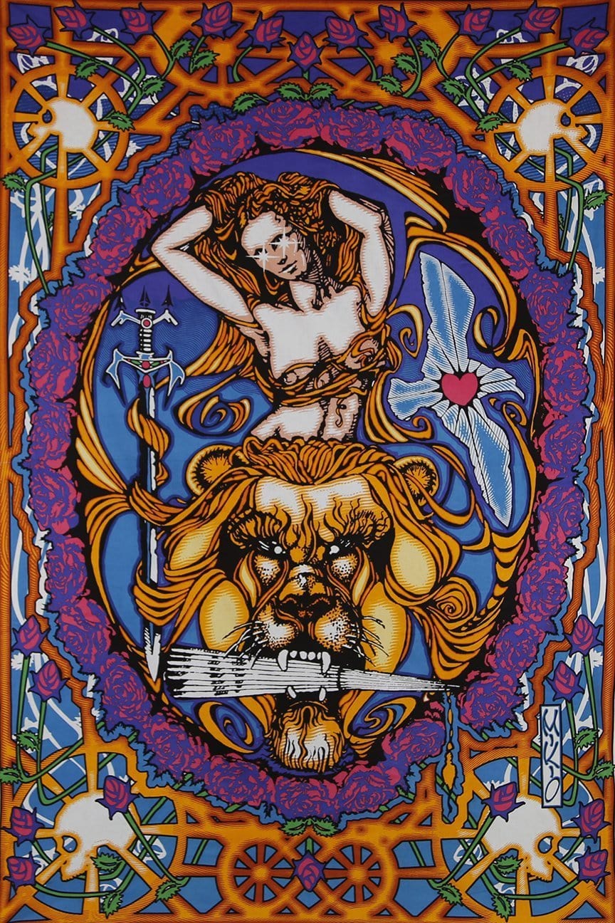 60 x 90" 3D psychedelic art tapestry. Hang it or spread it on the ground for a day under the sun. 100% cotton with corner loops for hanging.
