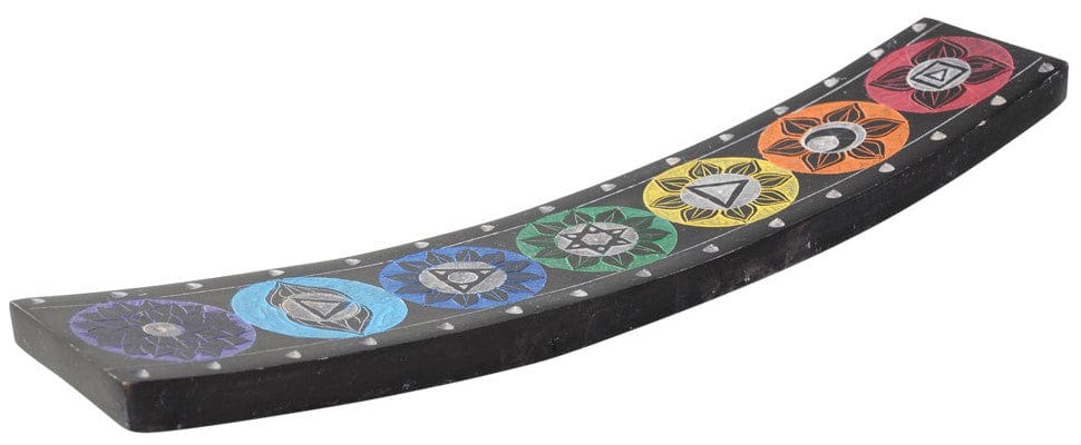 1.5 x 10" incense burner. Center yourself and illuminate your free spirit with your favorite aromatherapy incense. The 7 Chakra Soapstone Canoe Incense Burner holds your incense while the fragrance takes you to that perfect headspace. Trippy, hippie, psychedelic room decor you can vibe.