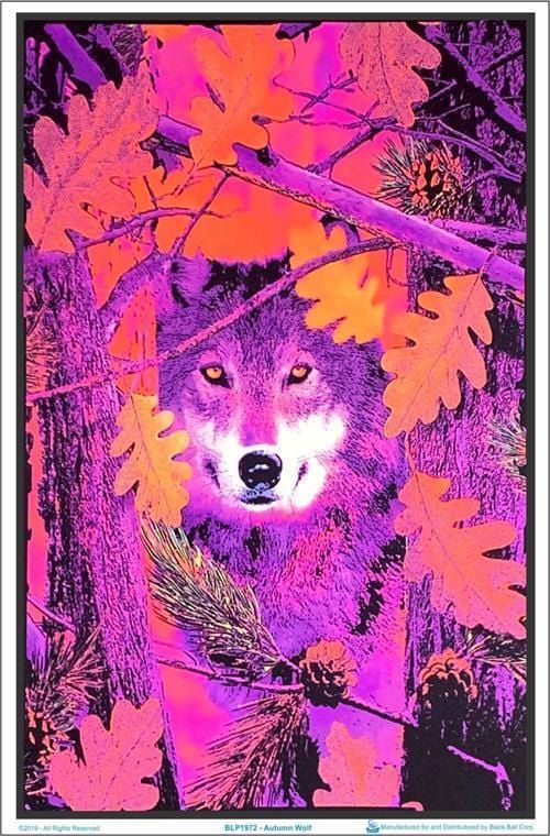 23 x 35" fuzzy black light velvet poster. Find your inner wolf (or whatever your spirit animal is). Black light reactive.