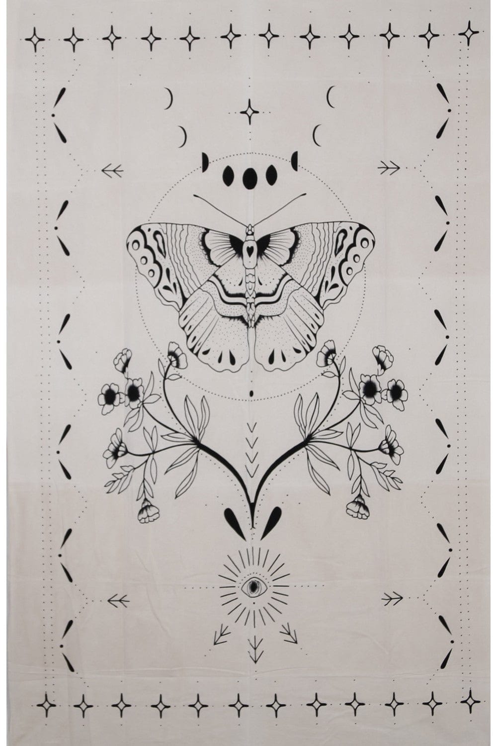 52 x 80" tapestry. Illuminate your walls with the Butterfly Flower Tapestry. Hang, spread or toss it wherever you like. A vibrant nature tapestry for your wall, bed or a free spirit afternoon hanging under the sun. Style your trippy room decor your way. Trippy, hippie, psychedelic tapestries you can vibe.