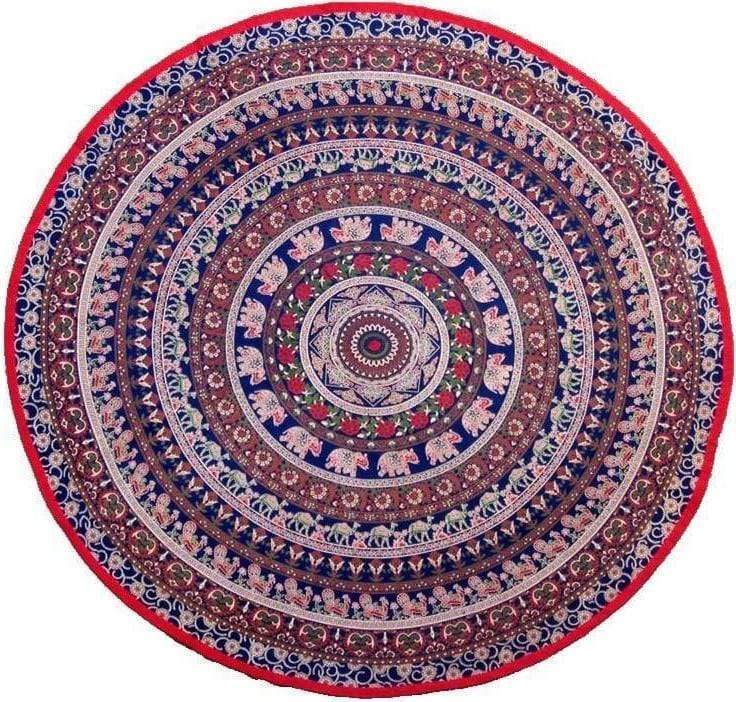 Elephant and Peacock Mandala - Blue and Red - Round Tablecloth
