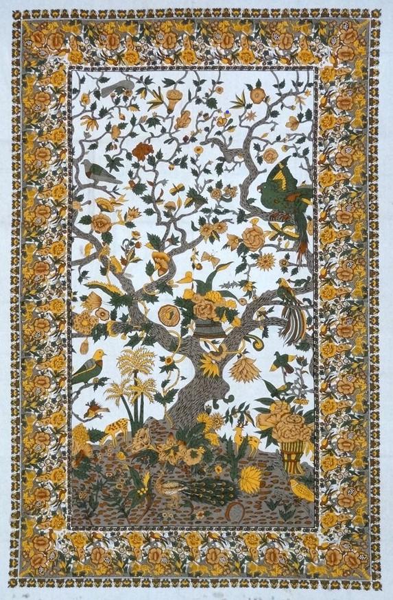 Flowering Trees and Birds - Grey, Yellow and Brown - Tapestry