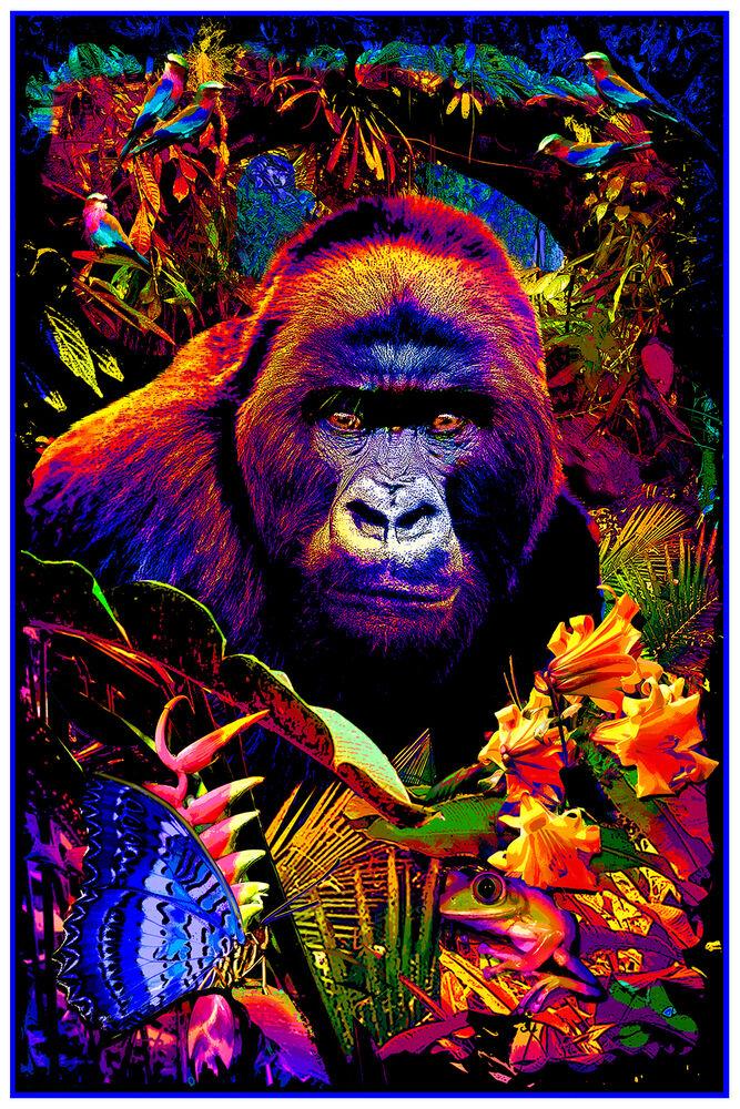 24 x 36" black light poster. Printed using fluorescent inks on standard gloss poster paper, black light reactive posters pop with vivid colors. Turn your lights down low; under a UV black light it glows with a special effect. Trippy, hippie, psychedelic black light posters you can vibe.