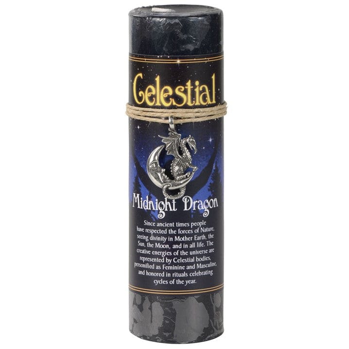 6" candle with pendant. Center yourself and illuminate your space with your favorite aromatherapy candle fragrances. The Midnight Dragon Celestial Pendant Candle is a high quality candle with a pure aroma perfect for your vibe. Trippy, hippie, psychedelic room decor you'll love.
