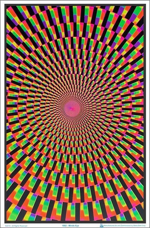 23 x 35" black light poster. Fall into the mind's eye optical illusion fuzzy velvet black light poster.
