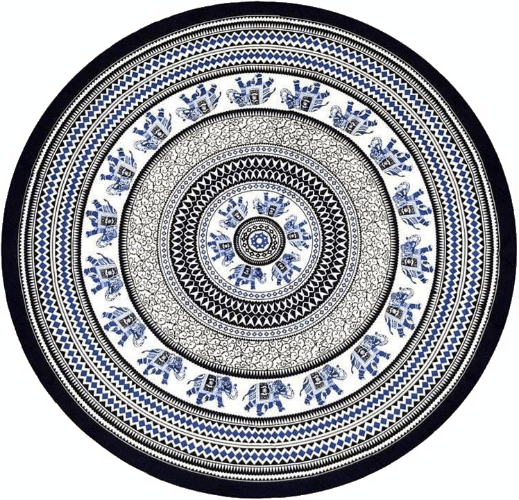 Modern Elephants Marching - Blue and White - Round Tablecloth