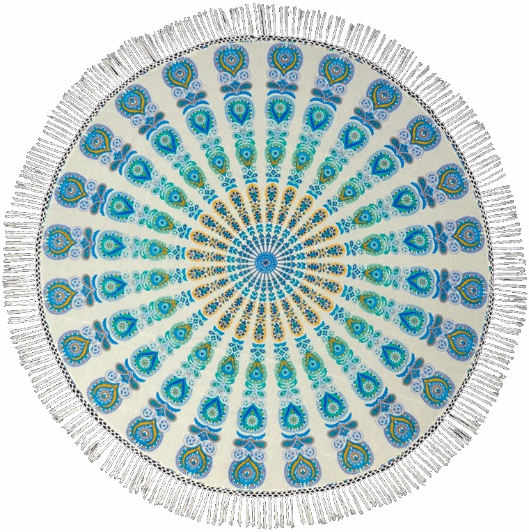 Peacock Mandala with Fringe - Turquoise - Round Tablecloth
