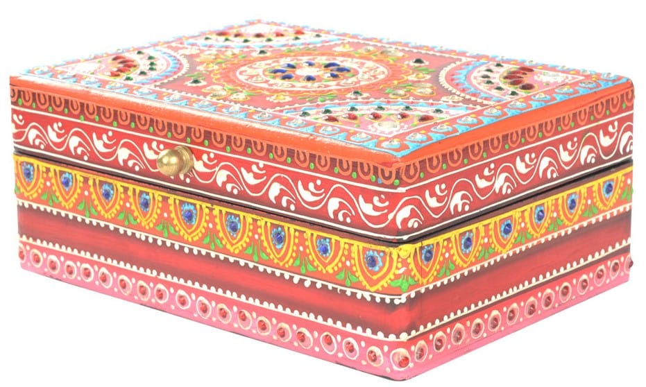 4 x 7.5" storage box. Stash your small items for safe keeping in the Red Mandala Hand-painted Wooden Storage Box. Find the perfect box to fit your style. Trippy, hippie, psychedelic wooden storage box you’ll love in any room decor.