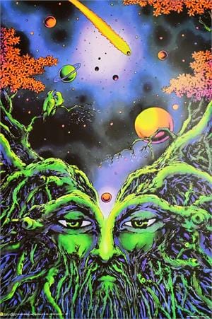 24 x 36" black light poster. Printed with fluorescent inks on standard paper, the Space Tribe Root of Life Black Light Poster pops with vivid colors. Turn your lights down low; under a UV black light it glows with a special effect. Trippy, hippie, psychedelic black light reactive posters you can vibe.