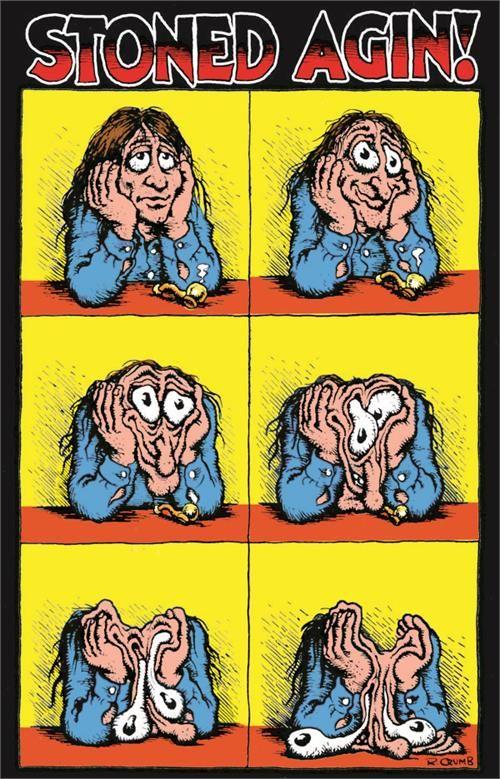 24 x 36" poster. Illuminate your walls with the R Crumb Stoned Agin Poster. Trippy, hippie, psychedelic wall art that stands out in any room decor. Printed on standard poster paper, it’s a vintage poster you can vibe.