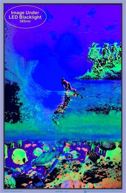 23 x 35" black light poster. Glow with a fuzzy velvet black light poster. Printed using fluorescent inks, it pops under a UV light.