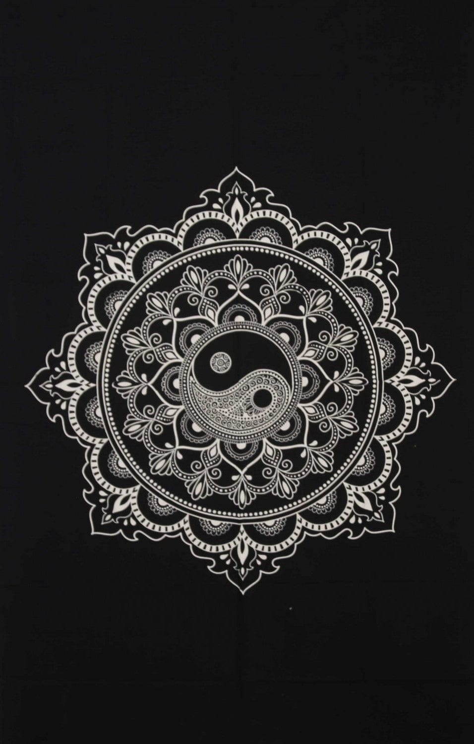 52 x 80" tapestry. Illuminate your walls with the Yin-Yang Mandala Tapestry. Hang, spread or toss it wherever you like. A vibrant mandala tapestry for your wall, bed or a free spirit afternoon hanging under the sun. Style your trippy room decor your way. Trippy, hippie, psychedelic tapestries you can vibe.