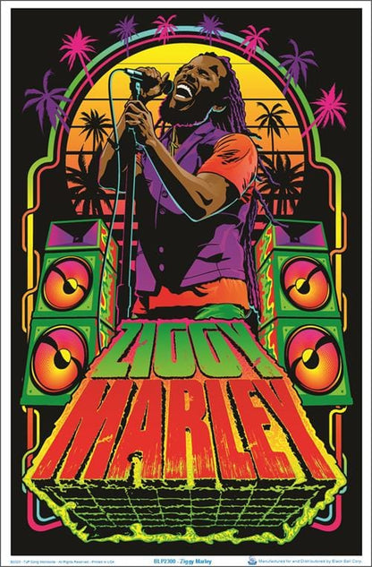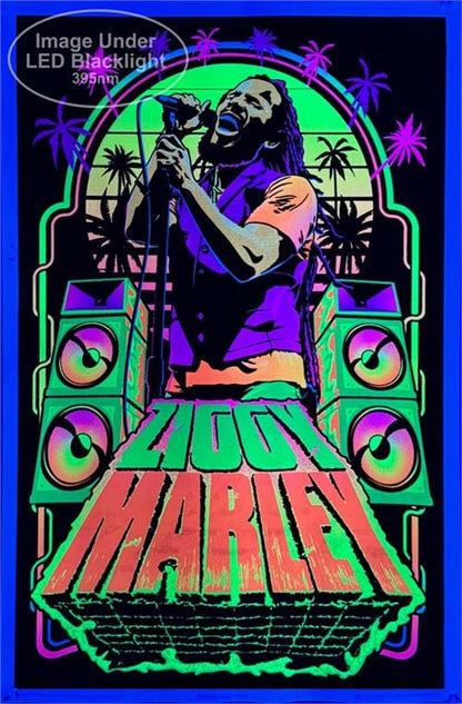 Room feeling dull? Illuminate your walls with the Ziggy Marley Fuzzy Velvet Black Light Poster.